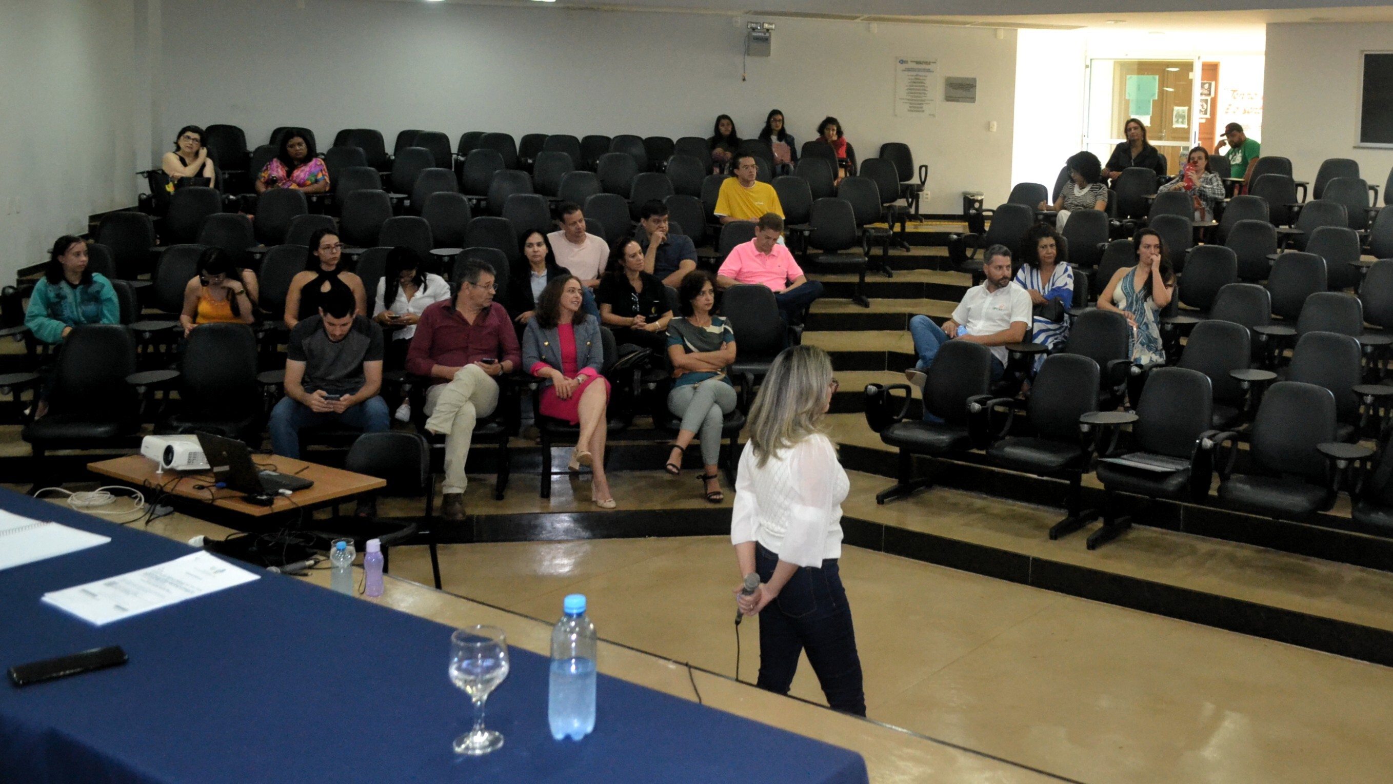 A professora Magda Valéria, do Instituto de Geografia (Igeo), apresentou dados de uma pesquisa a respeito da violência contra as mulheres. Para a docente, é necessário unir esforços para uma ação mais efetiva de combate às diferentes formas de violência contra as mulheres, de forma a assegurar a autonomia e acolhida a todas que necessitem. Neste sentido, a professora Maria Zenaide Alves, da Faculdade de Educação (FE), ressaltou que a violência contra a mulher não é apenas física, mas ocorre também, por exemplo, quando se exige que a mulher siga determinados padrões de beleza.